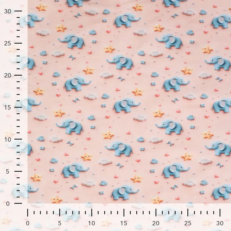 Der Baumwolljersey „Kleine Elefantenwolke“ ist ein süßer Traum für alle, die weiche, kindgerechte Designs lieben. Die kleinen blauen Elefanten, kombiniert mit Sternen, Herzchen und Wolken, wirken warmherzig, verspielt und perfekt für Baby- und Kinderkleidung.