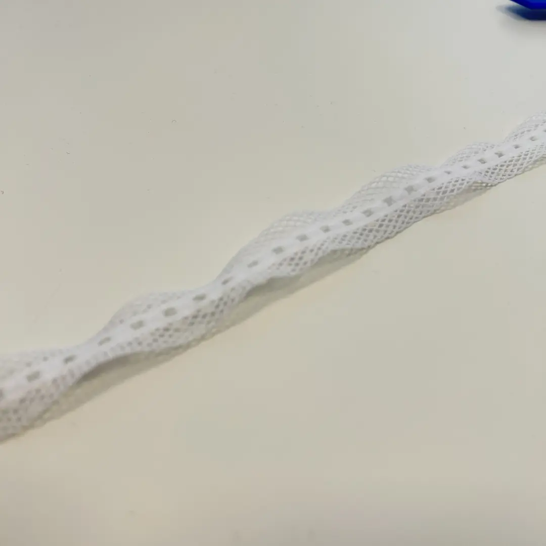 Mit ihrer filigranen Wellenkante und der elastischen Struktur eignet sie sich perfekt für Unterwäsche, Kinderkleidung, Tops oder feine Dekoarbeiten.