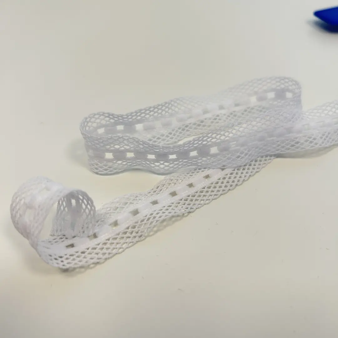 Zart, dehnbar und elegant – die Spitzenborte „Pure Grace“ in Weiß ist der ideale Begleiter für feine Nähprojekte.