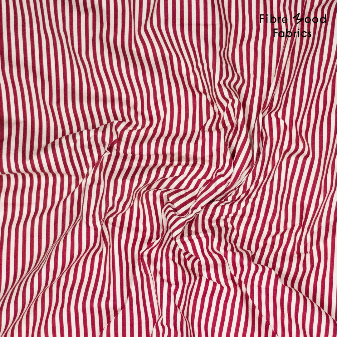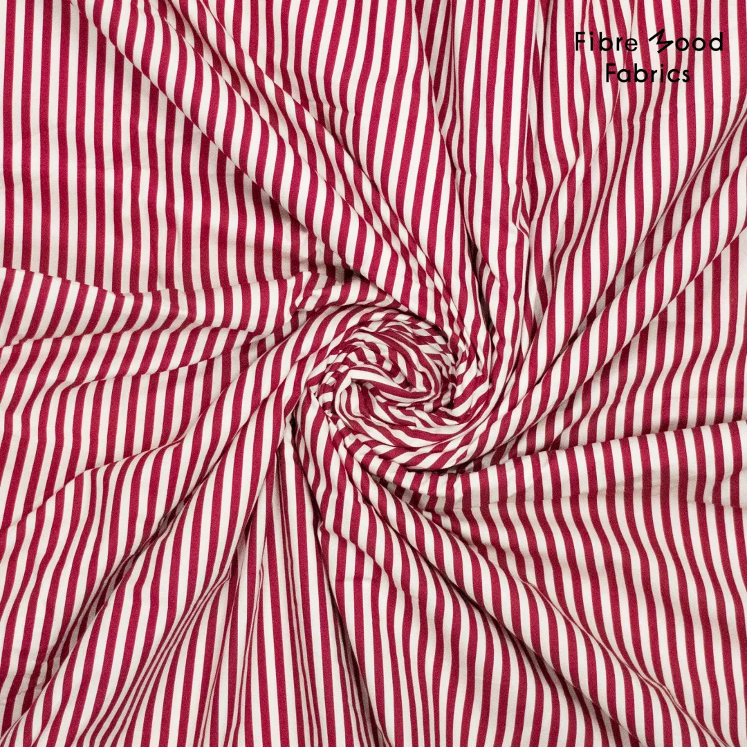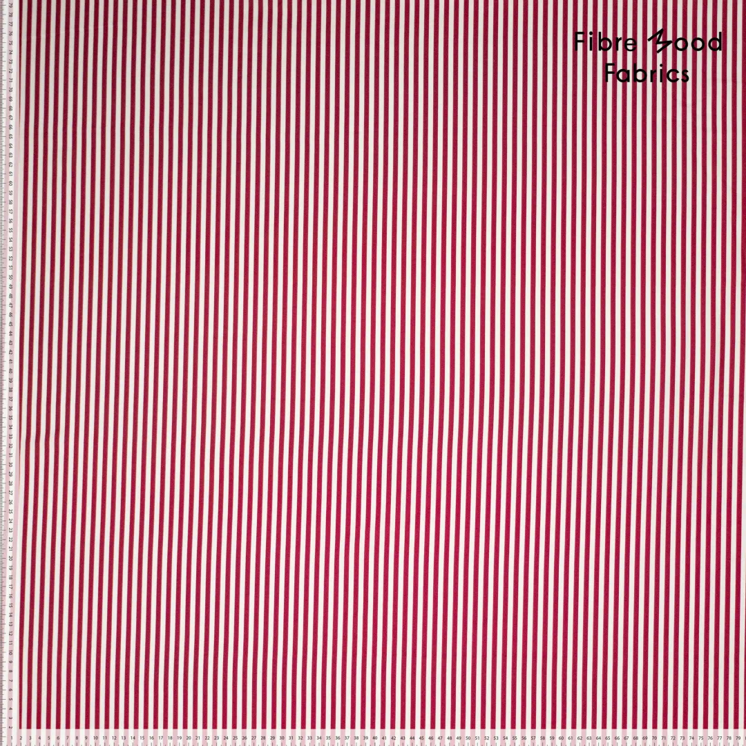 Der Fibre Mood Stoff FM435015 ist eine hochwertige gewebte Baumwollpopeline mit elegantem Bordeaux-Weiß-Streifenmuster. Dank der feinen, glatten Oberfläche fällt die Popeline leicht und eignet sich perfekt für moderne Nähprojekte, die klare Linien und saubere Silhouetten verlangen.
