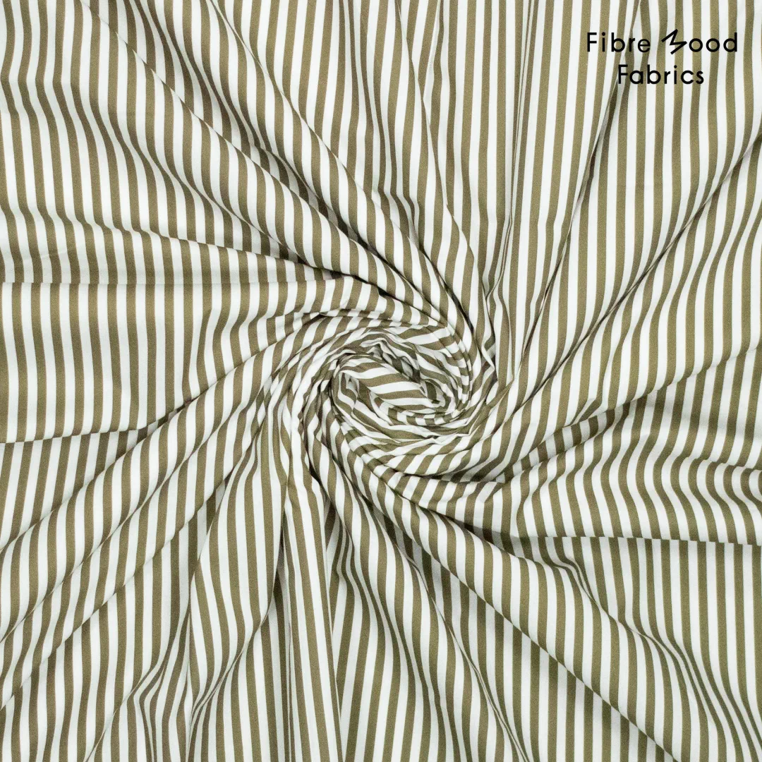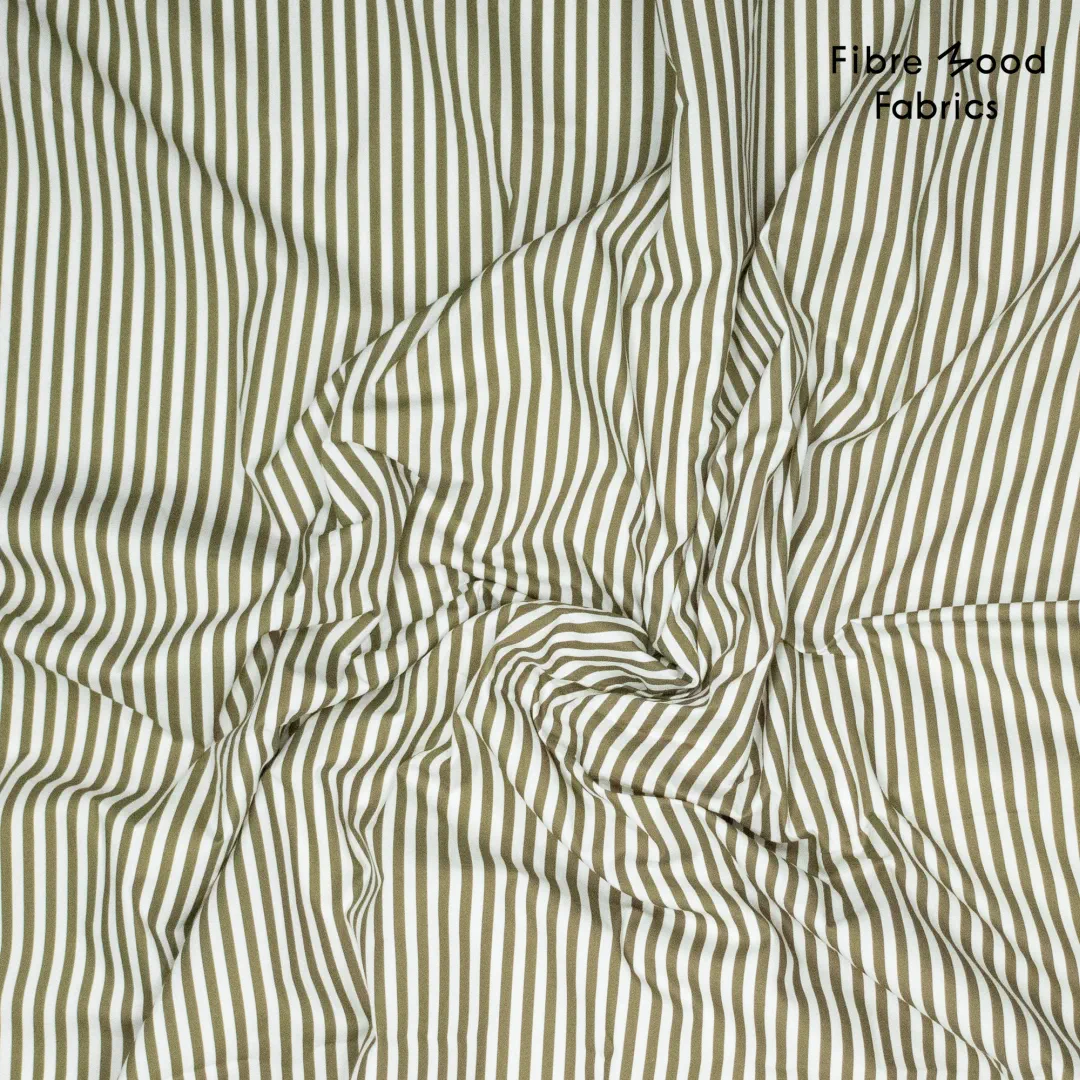 Der Fibre Mood Stoff FM435015 ist eine hochwertige gewebte Baumwollpopeline mit klassischen geraden Streifen in Olive und Weiß. Das klare, elegante Streifenmuster macht diesen Stoff perfekt für moderne, zeitlose Nähprojekte – von schicken Blusen über Hemden bis hin zu Kleidern oder Kindermode.
