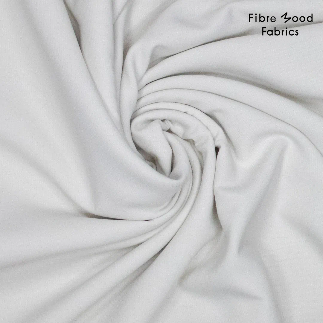 Der Fibre Mood Crepe FM794324 ist ein hochwertiger Webstoff aus Polyester, Viskose und Elasthan. Er fällt weich, fühlt sich glatt an und hat eine dezente Crepe-Struktur. Die Farbe ist ein sanftes Elfenbein, ideal für elegante Kleidung.