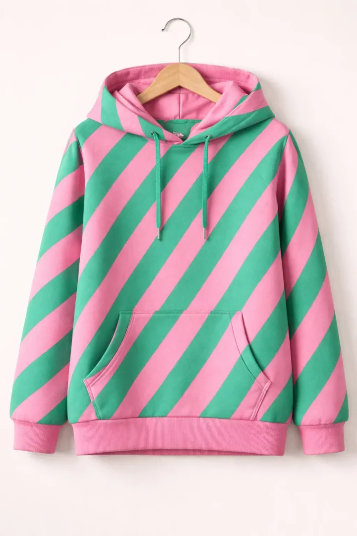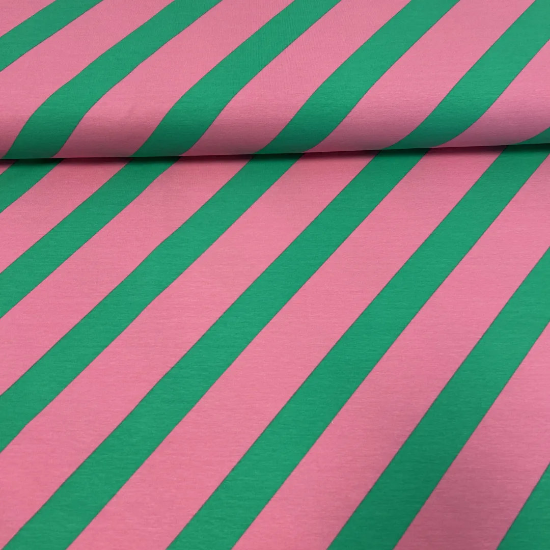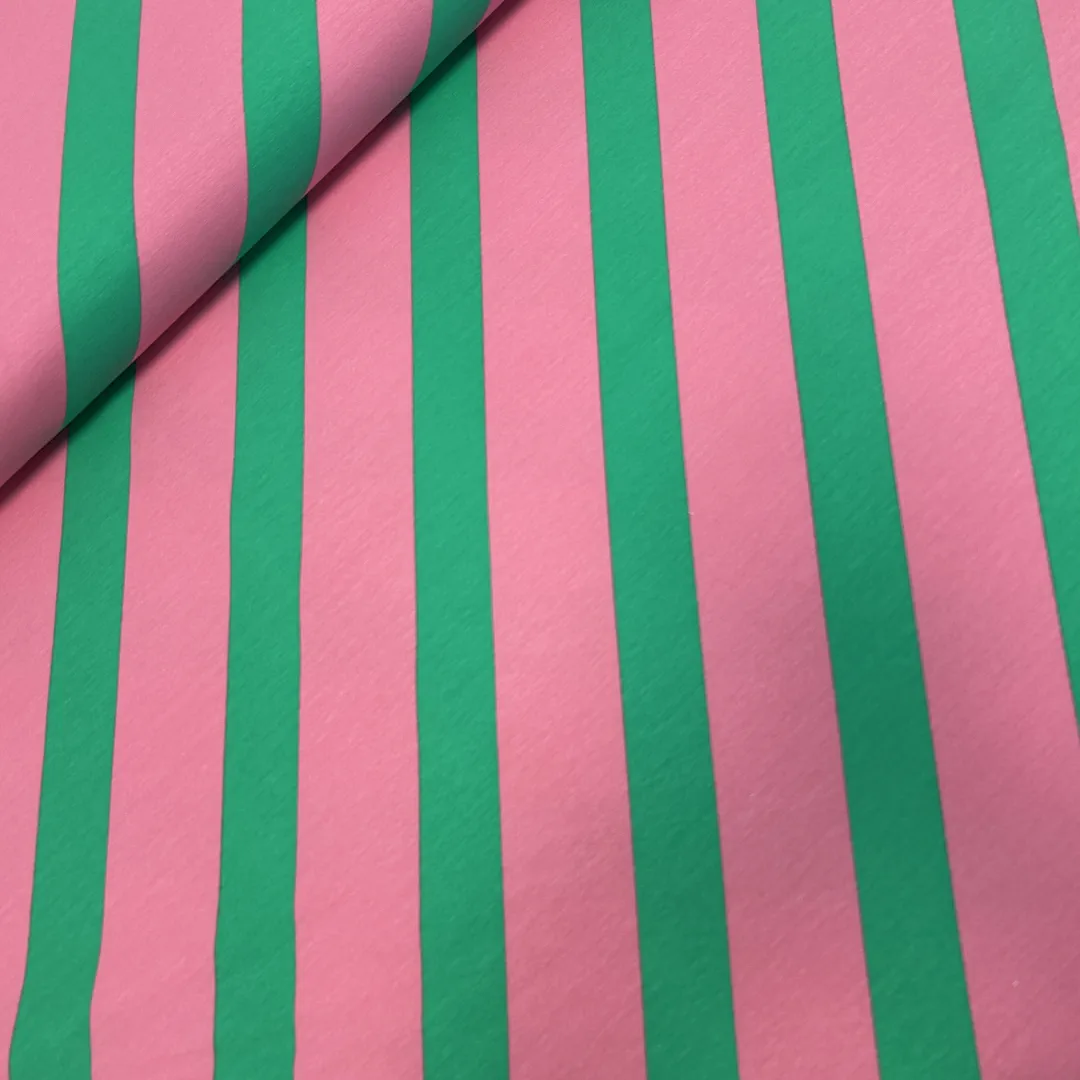 French Terry Streifen Rosa–Grün – weicher Sommersweat für Kleidung & kreative Projekte