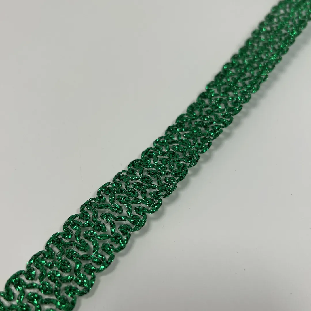 Diese glitzernde Borte in strahlendem Smaragdgrün ist ein echter Hingucker! Perfekt für alle Projekte, die ein bisschen Glamour vertragen – ob an festlicher Deko, Accessoires oder besonderen Kleidungsstücken.
