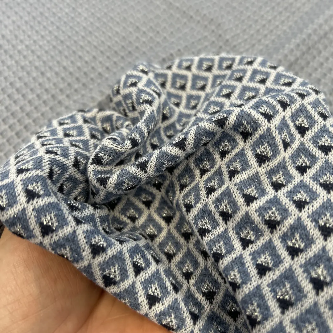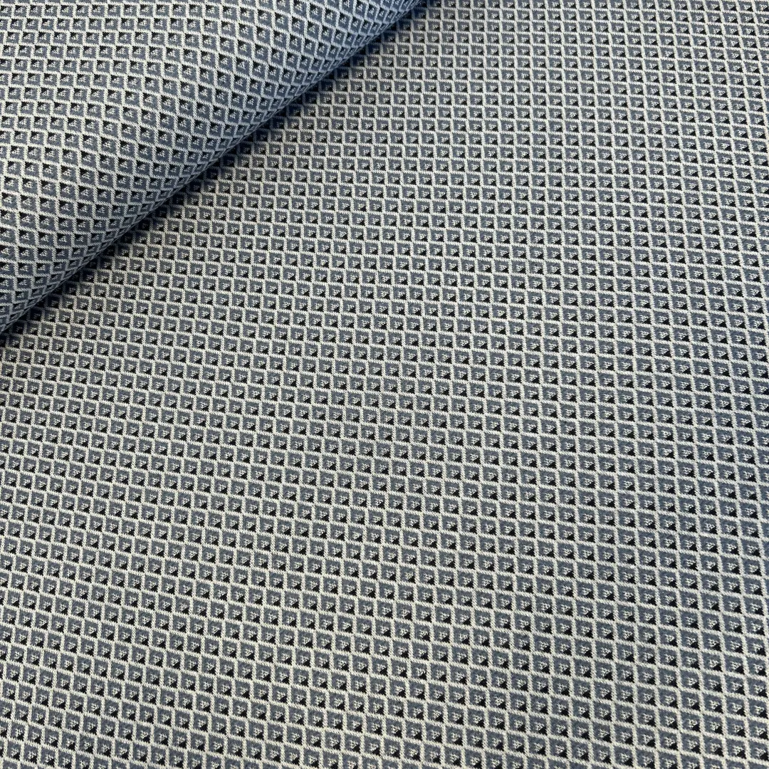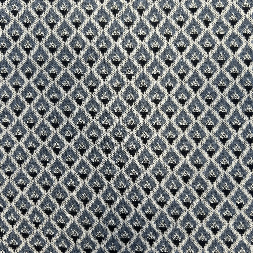 Jacquard Stoff mit Rautenmuster – Blau/Schwarz/Weiß – Weich & Formstabil
