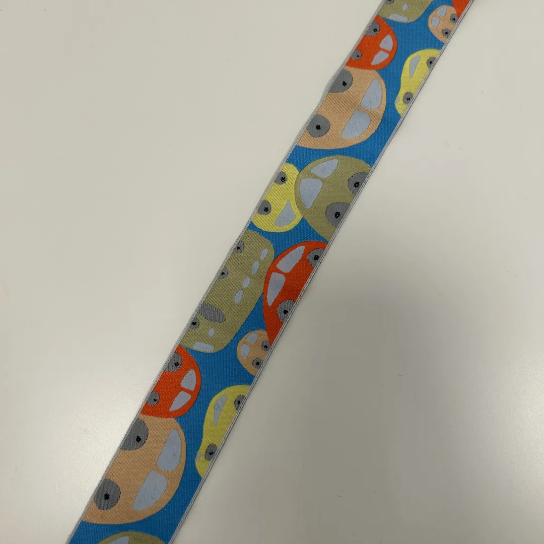 Diese 35 mm breite Jacquardborte mit Fahrzeugmotiv ist ein echter Blickfang für Kinderkleidung und Accessoires. Die detailreich gewebten Autos in warmen Farben auf blauem Grund wirken hochwertig und bleiben auch nach dem Waschen formstabil und farbintensiv.