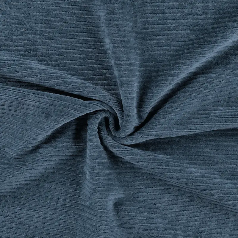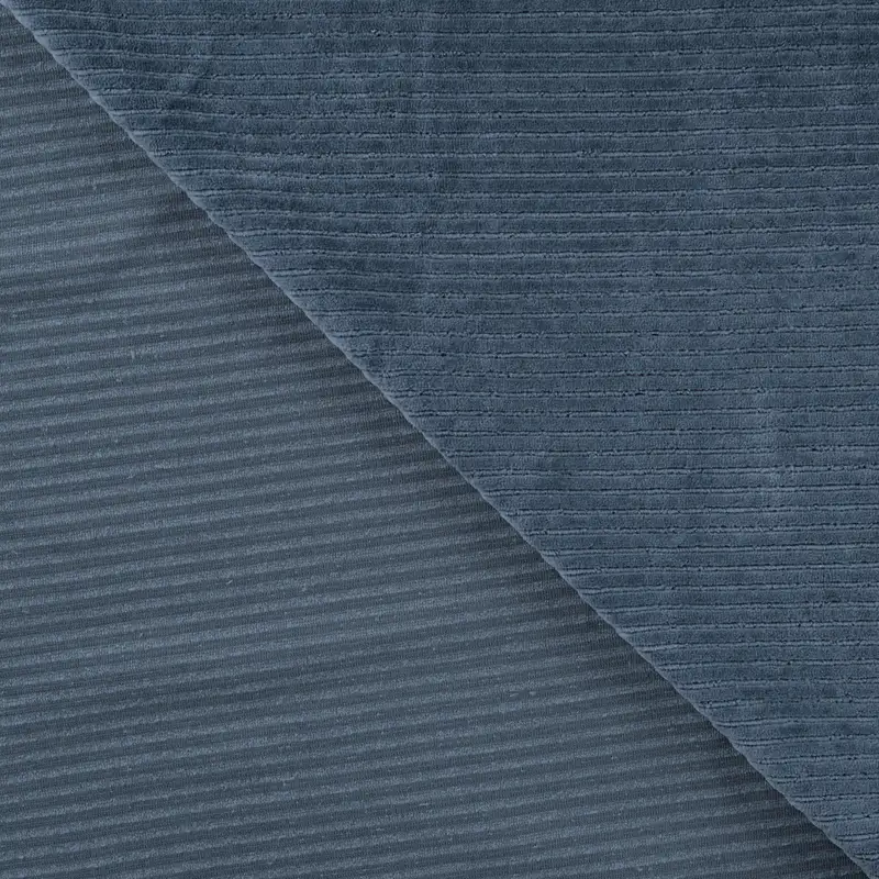Genau das ist dieser Jersey Cord in Jeansblau.