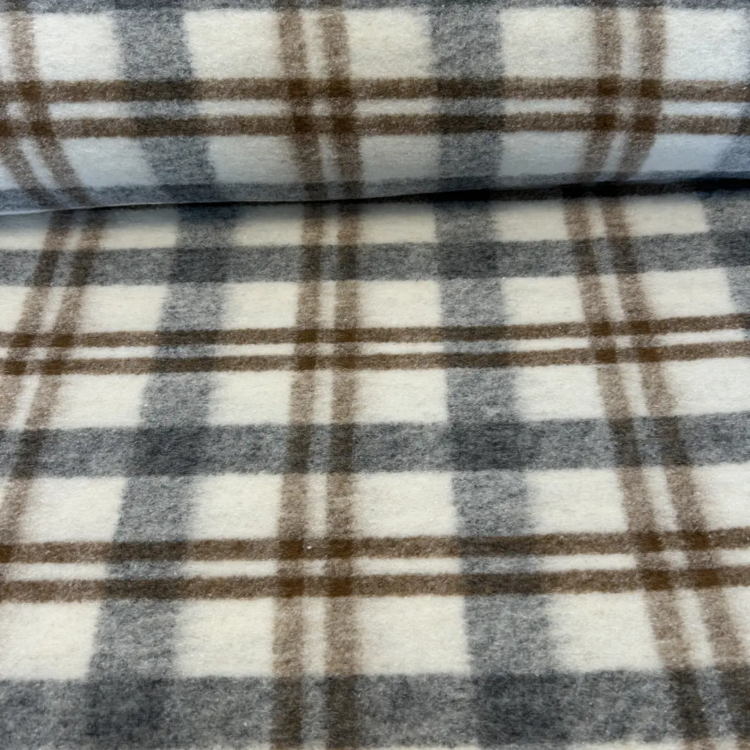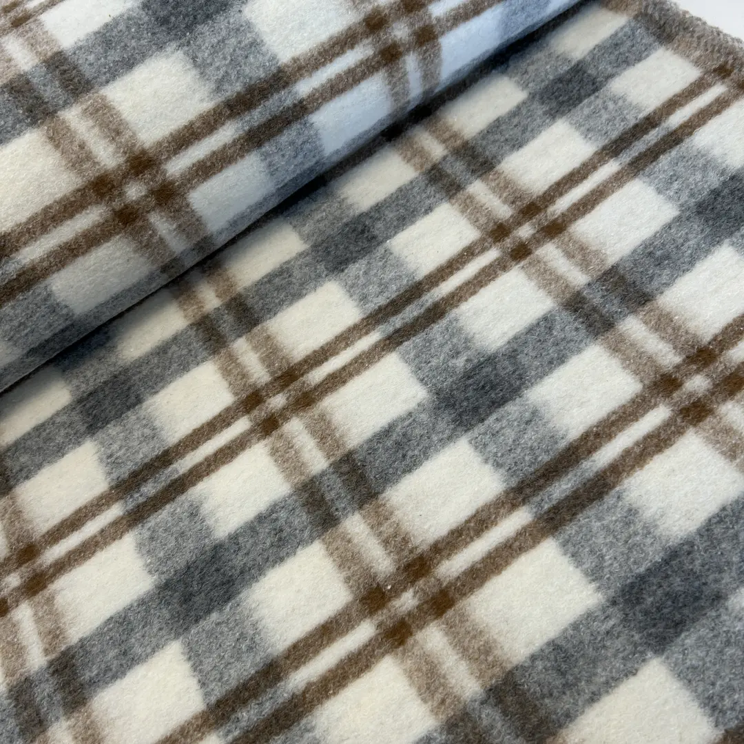 Kariertes Wollmischgewebe – Grau/Braun – Wolle & Polyester