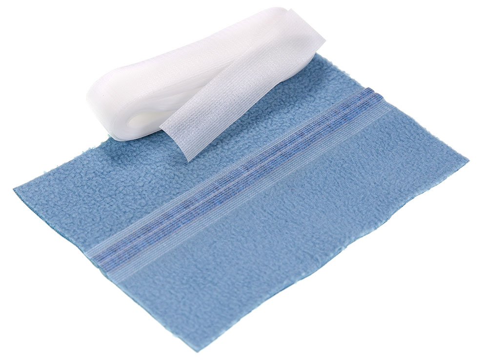 Das Band wird einfach aufgebügelt, bleibt dabei flexibel und ist durch die transparente Optik unauffällig im fertigen Kleidungsstück.