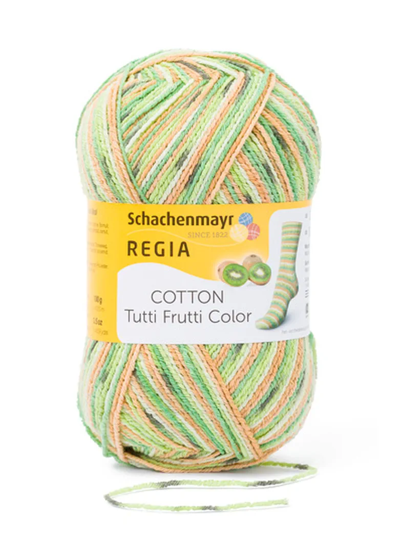 Diese Sockenwolle bringt sommerliche Leichtigkeit auf deine Nadeln! Regia Cotton Color Tutti Frutti begeistert mit frischen Farben und einem angenehmen Tragegefühl. Die hochwertige Mischung aus 72 % Baumwolle, 18 % Polyamid und 10 % Polyester sorgt für weiche, atmungsaktive und strapazierfähige Socken, die perfekt für wärmere Tage geeignet sind. Der spezielle Fadenaufbau macht die Wolle formstabil und pflegeleicht – ideal für alle, die farbenfrohe Akzente setzen möchten!