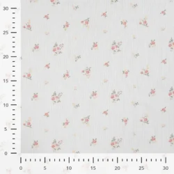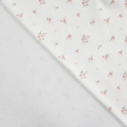 Der Rippenjersey „Floral Cream“ ist ein weicher, elastischer Feinstrickstoff mit feiner Rippstruktur und einem zarten, romantischen Blumenprint in Rosa, Gelb und Grün. Der cremige Grundton wirkt warm, natürlich und passt perfekt zu modernen wie klassischen Nähprojekten.