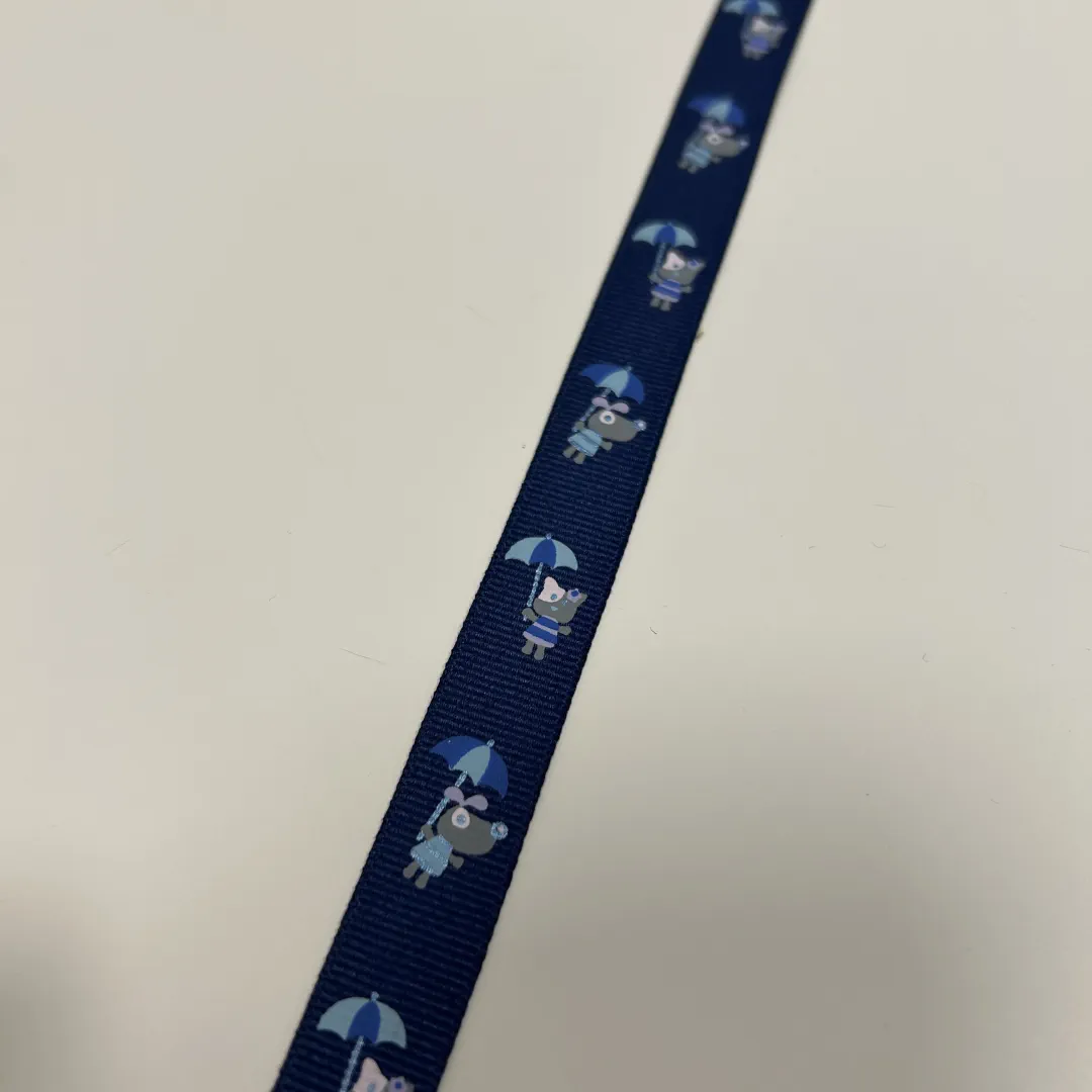 Ripsband 15 mm – Tier mit Regenschirm auf Dunkelblau