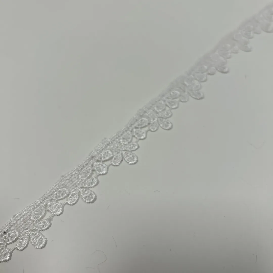 Diese 20 mm breite Spitzenborte in Weiß verleiht Nähprojekten eine feine, elegante Note. Die zarte Spitzenstruktur mit dekorativer Schlaufenkante wirkt leicht und hochwertig zugleich und eignet sich besonders für detailverliebte Arbeiten.