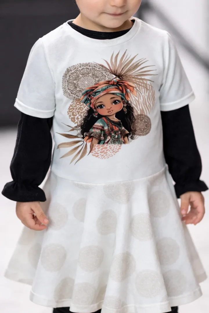 Dieses liebevoll zusammengestellte Stoffpaket „Boho Girls“ vereint ein ausdrucksstarkes Jersey-Panel mit einem perfekt abgestimmten Kombistoff – ideal für ein ganz besonderes Nähprojekt.