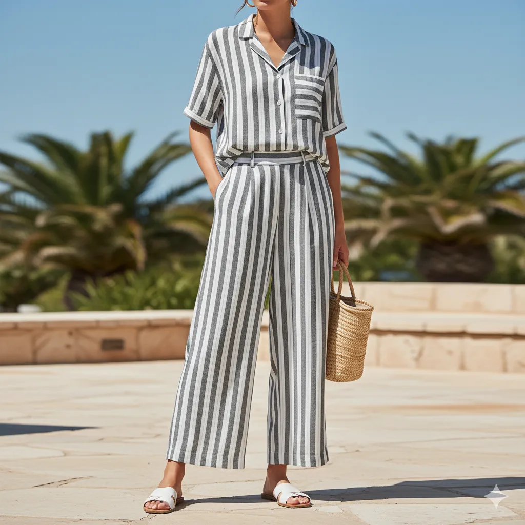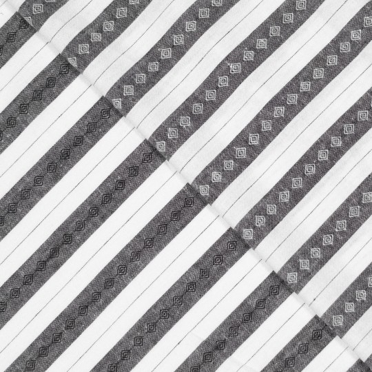 Die Streifen in Schwarz, Natur und Weiß wirken grafisch und ruhig zugleich. Sie geben dem Stoff Charakter, ohne aufdringlich zu sein. Ideal für schlichte Schnitte, die durch das Material und das Muster leben dürfen.