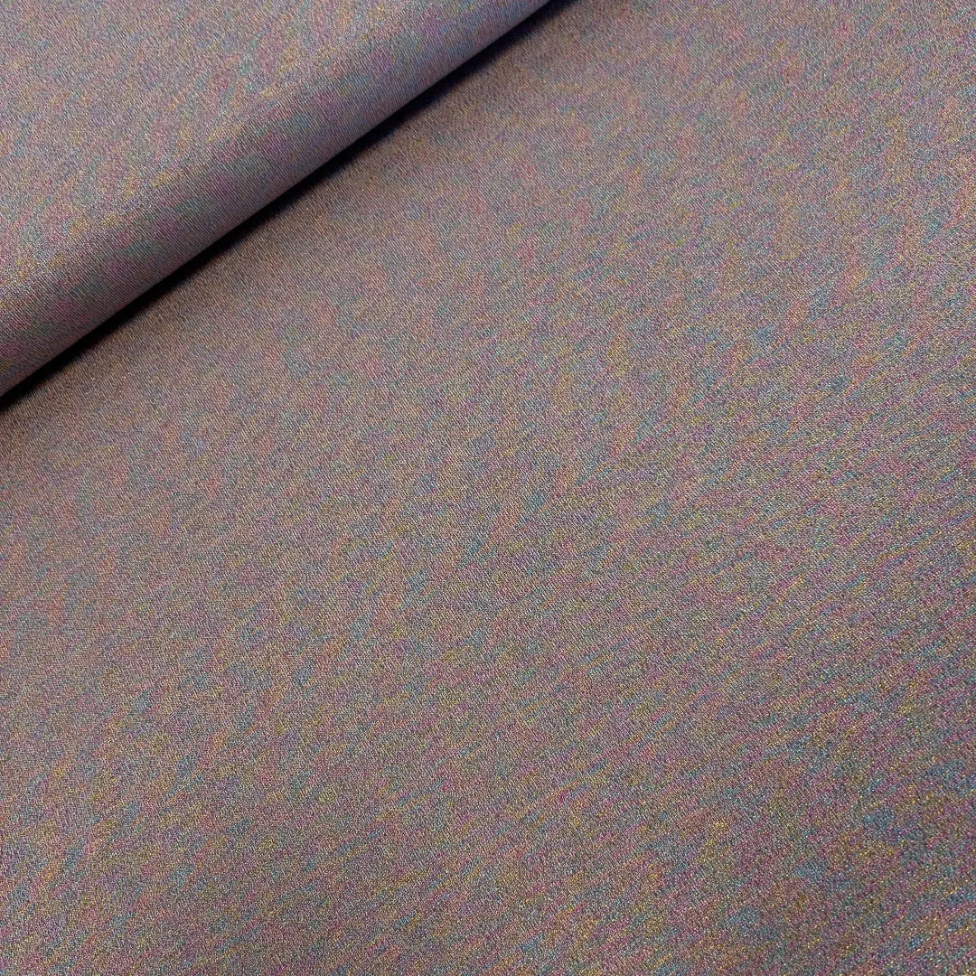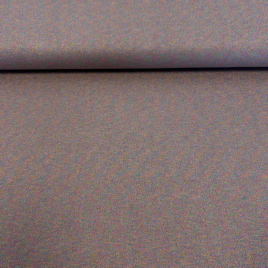 Dieser Viskose-Strickstoff ist ein echter Hingucker! Der feine, weiche Strick ist angenehm auf der Haut und hat einen dezenten Glitzer-Effekt in zarten Regenbogenfarben. Dadurch wirkt der Stoff edel, festlich und gleichzeitig modern.
