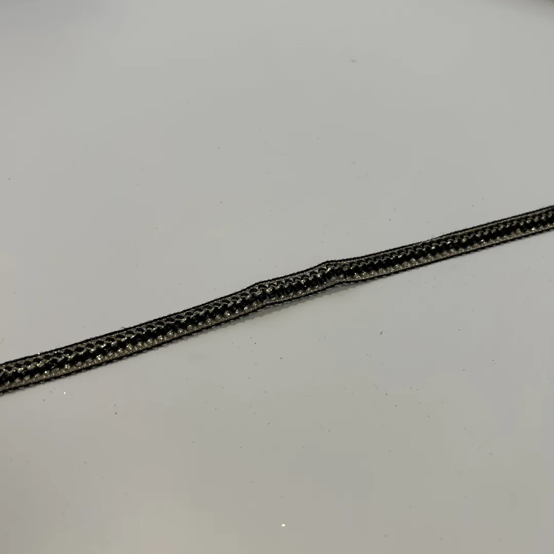Das Zierband „Metal Edge“ ist eine schmale, dekorative Borte mit edlem Farbspiel aus Schwarz und Gold. Die feine Struktur und der leichte Glanz sorgen für eine hochwertige Optik, die besonders gut für elegante Projekte geeignet ist.